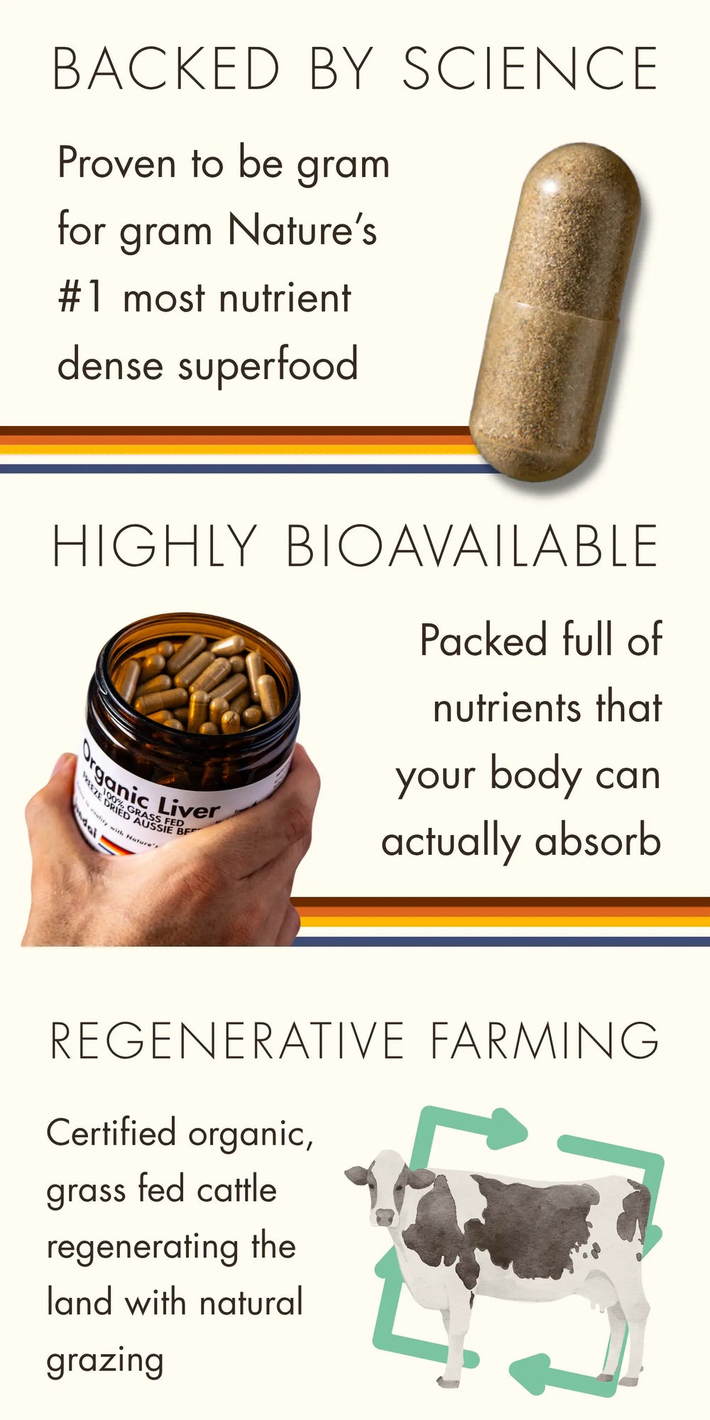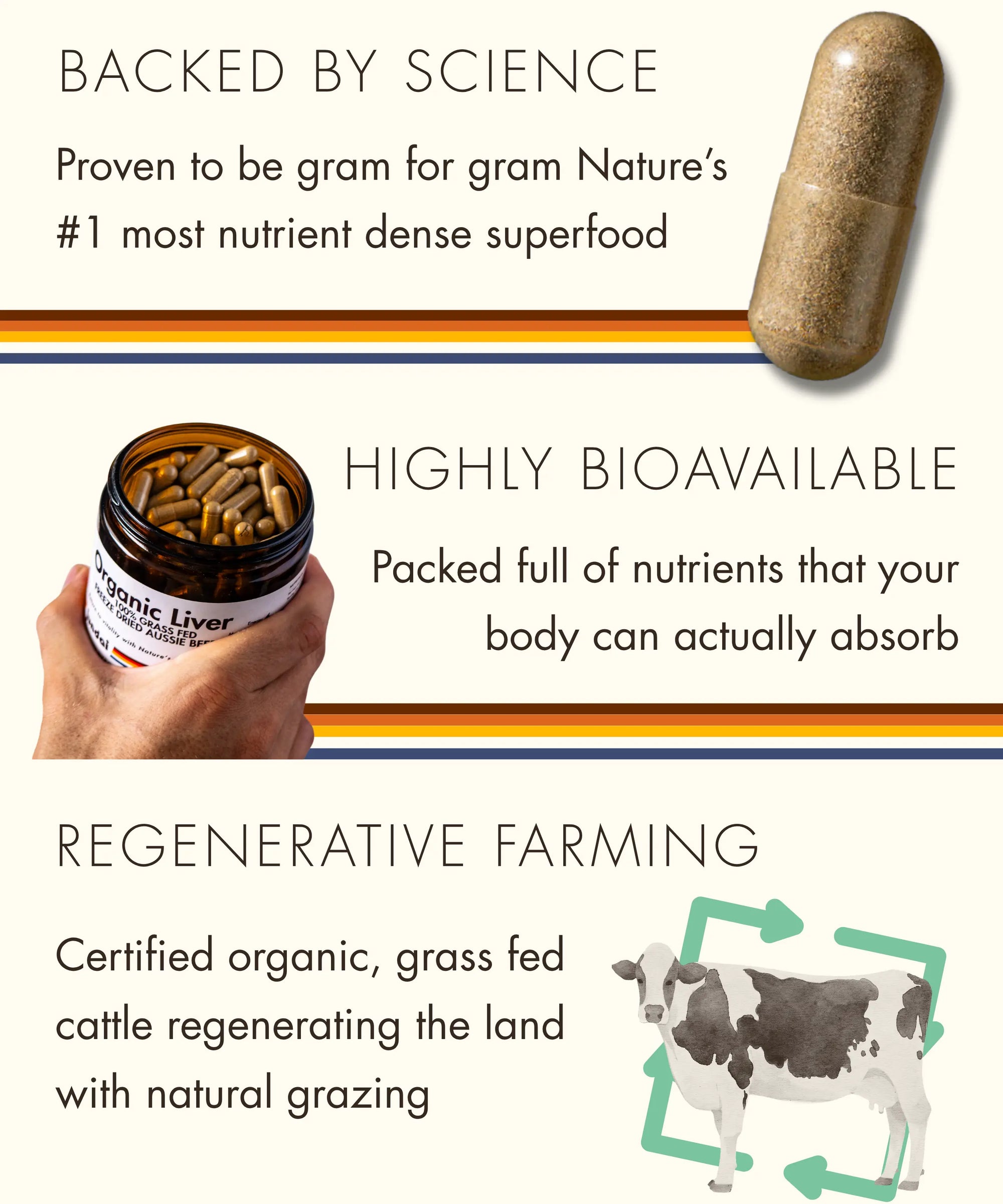Super-food organ meats, especially liver, is where our bodies evolved to get their nutrients from—plain and simple. They are packed full of essentials, such as bioavailable Vitamin A, B12 and Copper, which aren't found in adequate amounts in other foods. In addition, liver is full of other peptides, enzymes and co-factors which all work together synergistically to produce amazing results!
